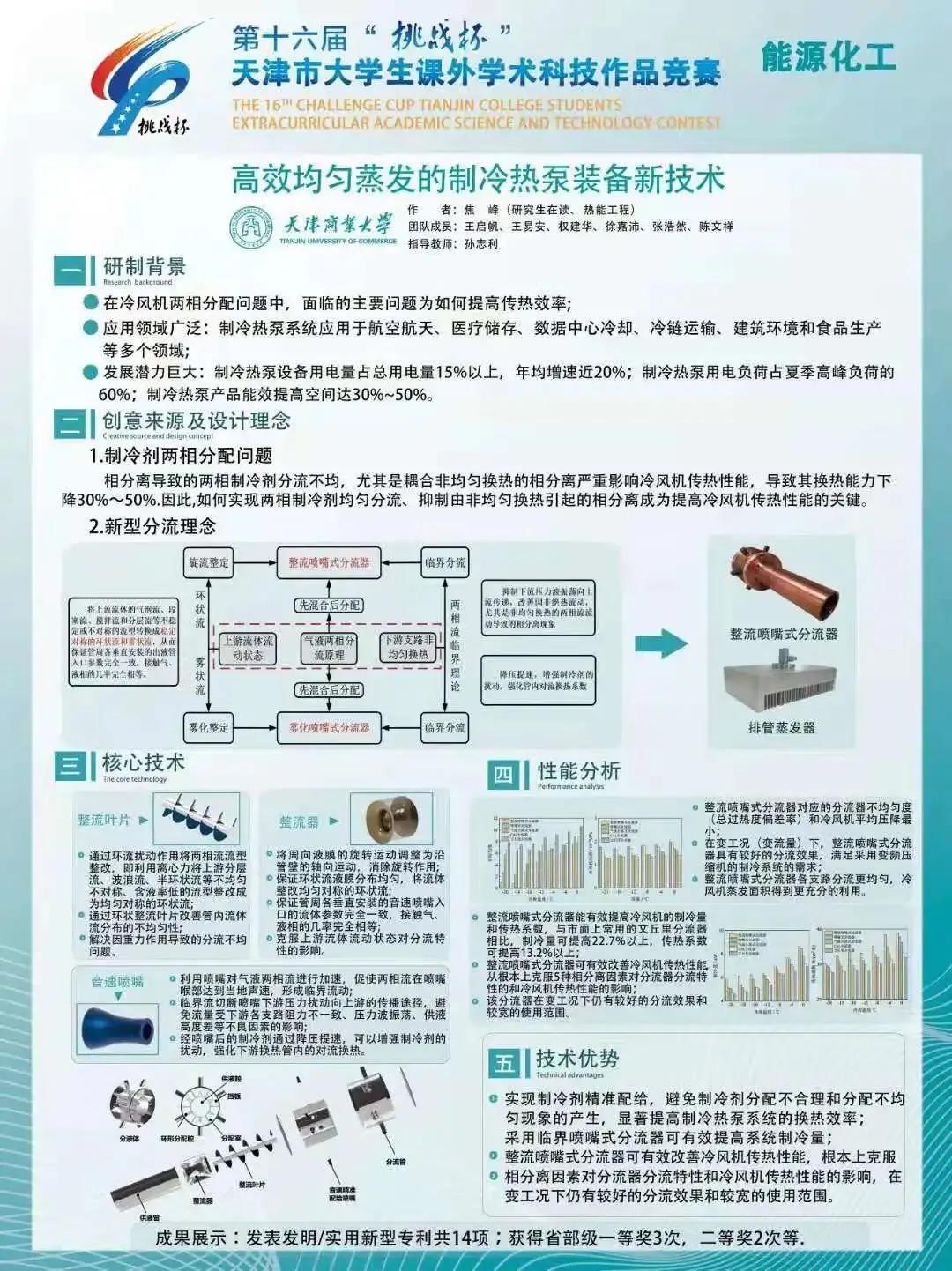 由公司孙志利老师指导的,焦峰、王启帆、王易安、权建华、徐嘉沛、张浩然和陈文祥同学的科技发明制作B类《高效均匀蒸发的制冷热泵装备新技术》作品斩获第十六届“挑战杯”全国老员工课外学术科技作品竞赛市赛特等奖,并拟推荐申报国赛!(审稿:张建东)