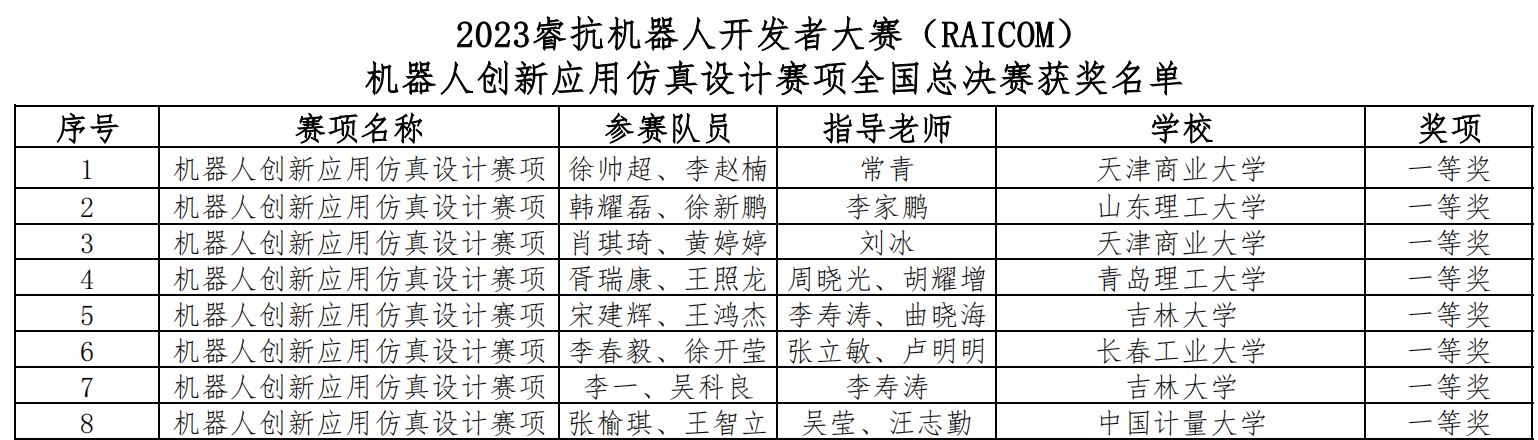 8月29日,2023年睿抗机器人开发者大赛(RAICOM)机器人创新应用仿真设计赛项全国总决赛成功举办。公司代表队取得优异成绩。徐帅超、李赵楠以及肖琪琦、黄婷婷两组选手提交的作品均获得全国总决赛一等奖。