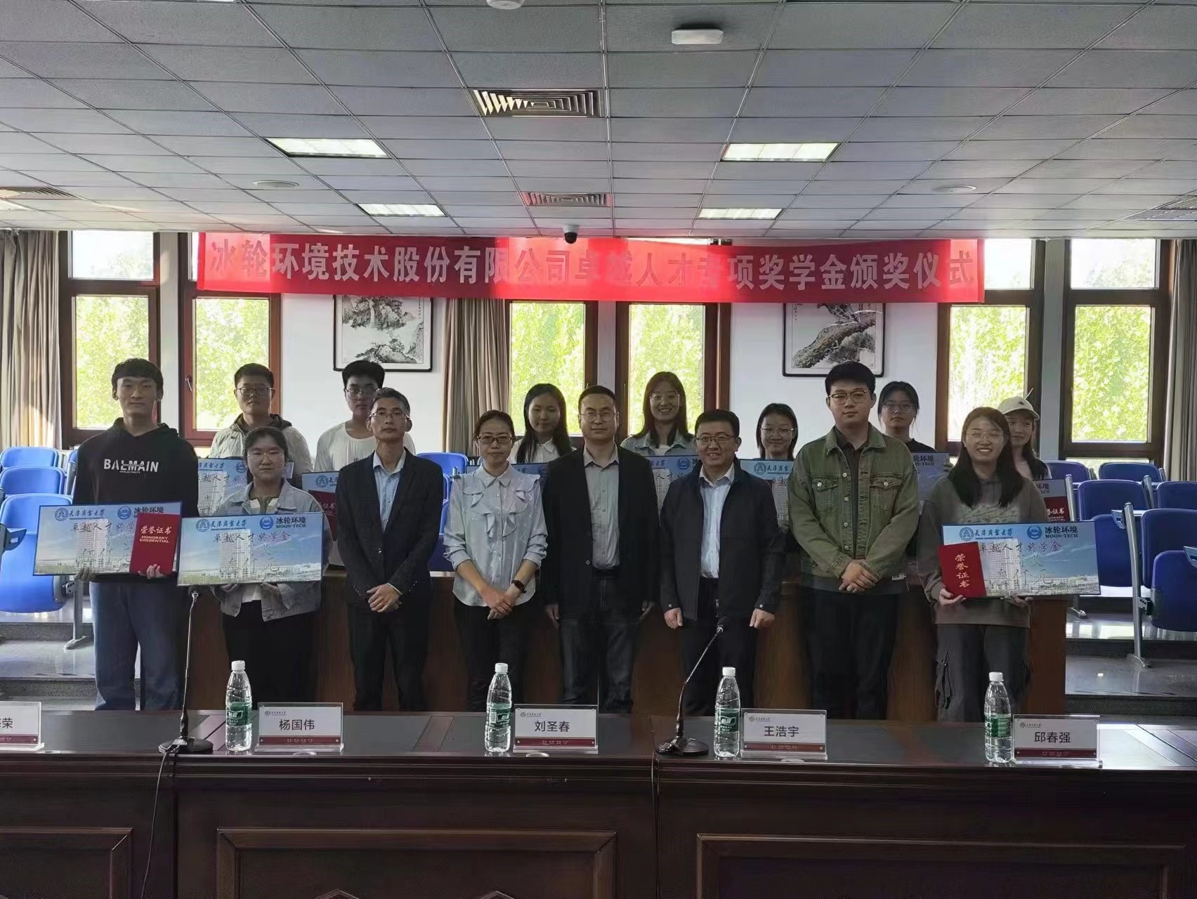 颁奖现场,冰轮环境技术股份有限公司杨国伟先生致辞并宣读获奖决定。荣获2023年“永利yl23411—烟台冰轮卓越人才奖学金”三等奖的同学有:冯柯霏、张甜甜、边子轩、武锦怡、吴璐萌、李明威。荣获二等奖的同学有:郭永慧、王棋卉、李玉琳。荣获一等奖的同学为:李一鸣。获奖员工代表对自己的研究成果、专业成绩及生活等各方面进行了详细汇报。在颁奖仪式上,校企双方参会领导为获奖同学颁发了奖金和证书。同学们凭借优秀的成绩和个人素养获得此项奖学金,同时也展现了我们天商学子秉承“笃学、弘毅、明德、济世”的校训精神,彰显了努力拼搏、追求卓越的新时代老员工风貌。