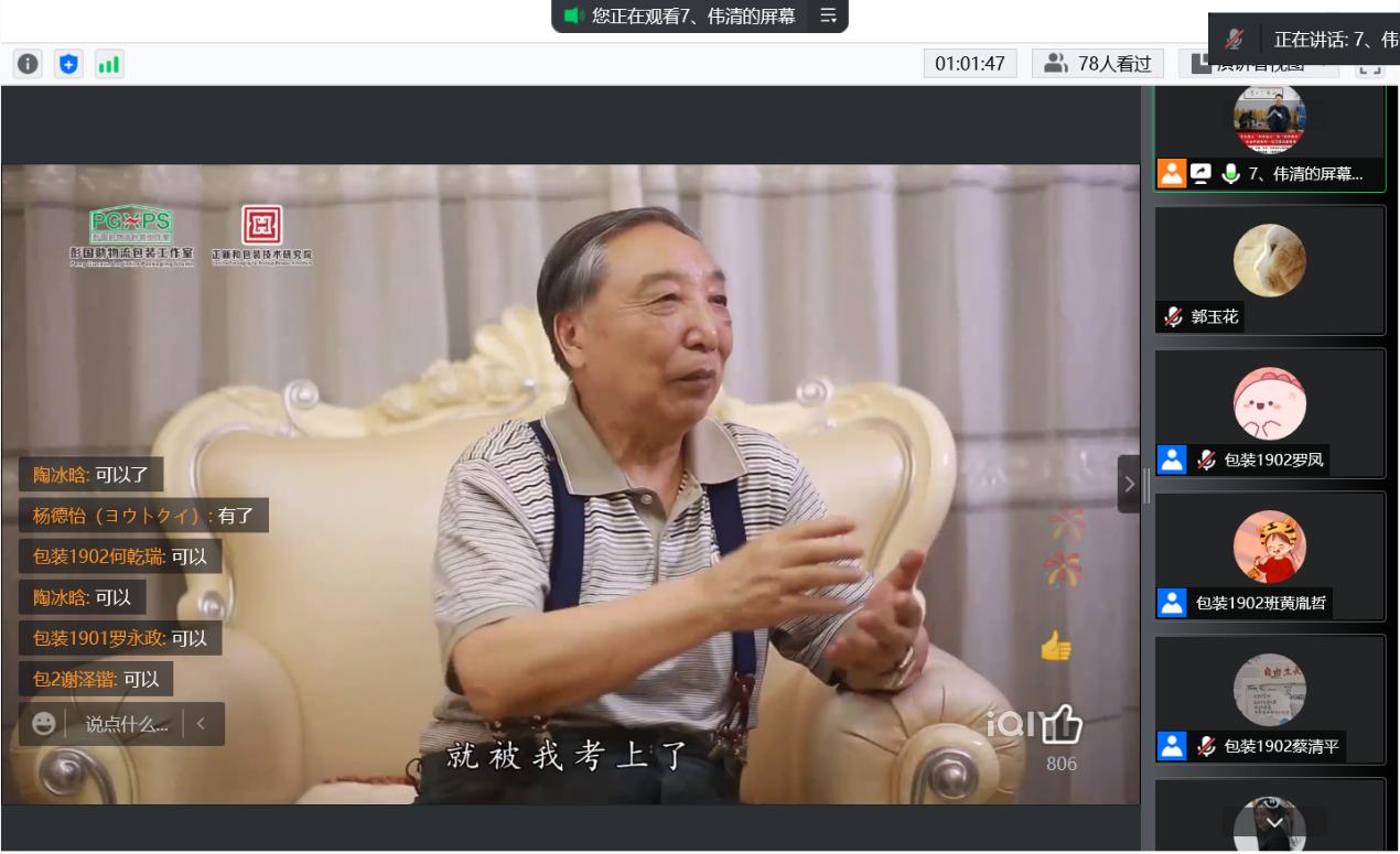 彭国勋教授受邀向师生们分享了他出国留学和编写包装工程专业教材的经历,向员工们表达了对包装行业的热爱以及对未来包装发展的期许。
