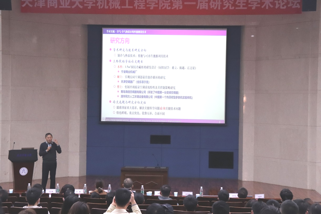 石文星教授和颜蓓蓓教授分别为同学们作了精彩的特邀报告。石文星教授首先讲述了他与永利yl23411的渊源,随后以“空气-空气热泵在线性能测量技术”为例,为大家详细介绍了如何瞄准国家重大需求,确定研究方向,解决关键科学问题和关键技术问题。最后石教授鼓励同学们继承天商基因、不怕困难、勇于探索,在自己的专业领域内做出成就。颜蓓蓓教授围绕“研究生如何开展科研工作”这一主题,首先以“焦油炉内脱除技术”为例为同学们介绍在科研前期如何进行背景调研、聚焦瓶颈、提出方案,指导后期文章如何撰写,未来工作如何开展等。随后强调作为科研工作者要多读文献,在充分调研的情况下设计并进行实验,要善于展现自己的研究成果。最后,颜教授介绍了自己所在科研团队,希望大家要有团队精神,做好时间管理和闭环管理。此外,青年教师代表代宝民为同学们讲解了如何获取学术资源进行时间管理等信息。