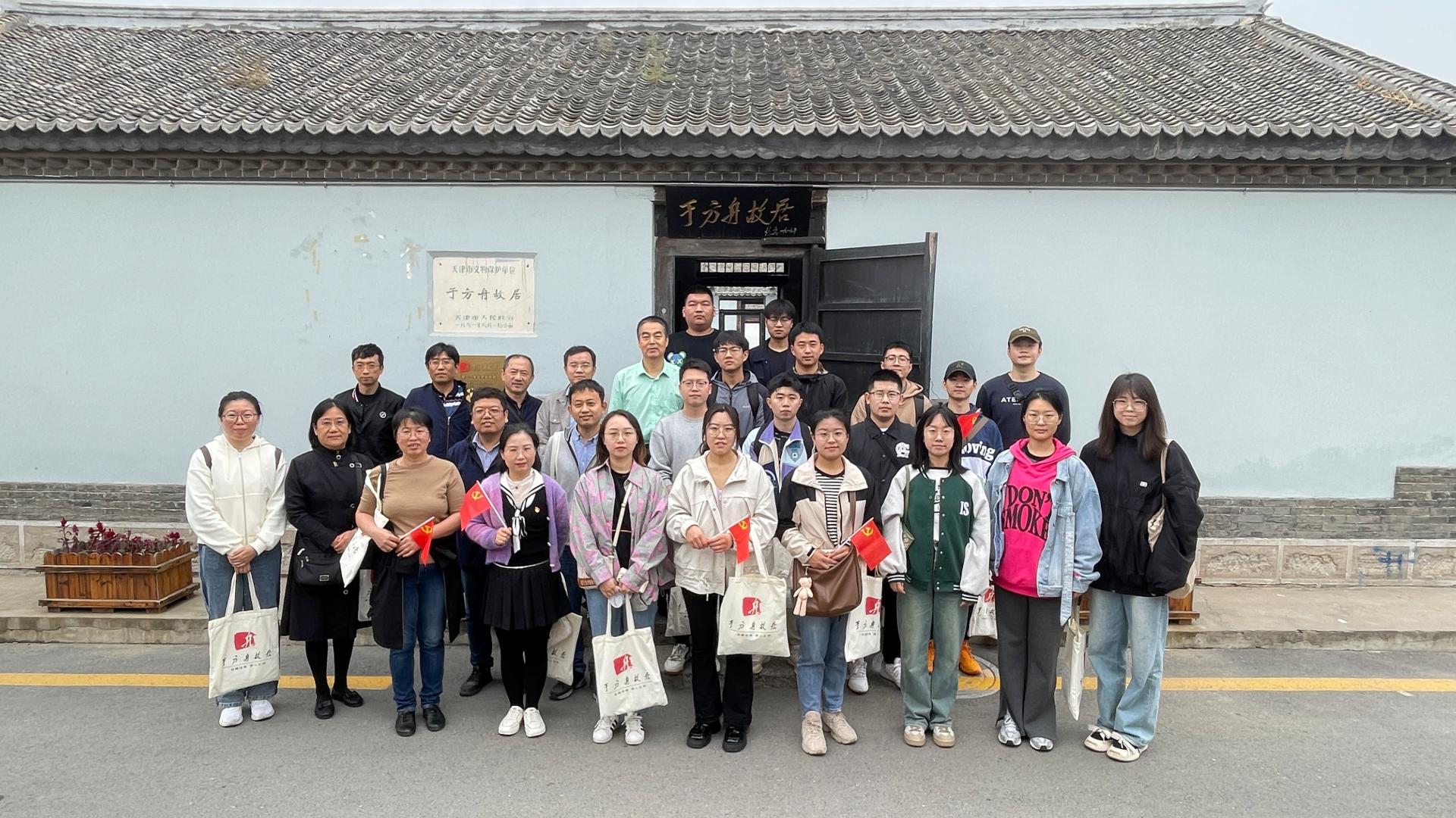 在宁河区于方舟故居,全体师生跟随讲解员的介绍,沿着当年于方舟、周恩来、邓颖超等进步青年造访俵口镇时所走的路线,实地参观了红色革命标语墙绘、方舟步道、方舟故居等点位,聆听当年爱国员工泛舟七里海、探索救亡图存道路的故事。瞻仰革命事迹,缅怀革命先烈,传承红色基因,真切感受于方舟烈士作为天津五四运动杰出的领导者之一,以天下为己任,甘洒热血,以己为舟济苍生的英雄气概。全体师生真正接受了一次精神上的洗礼。