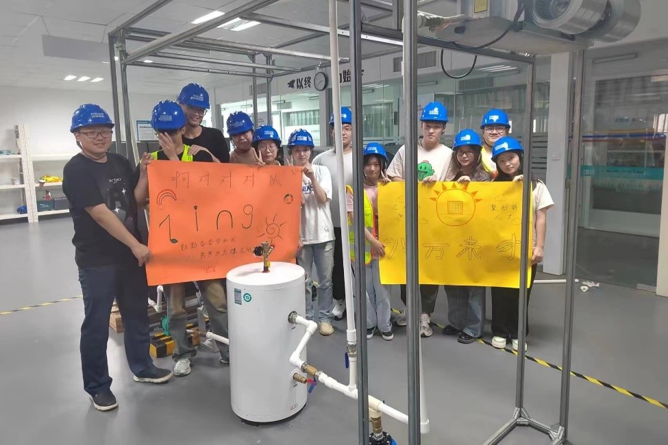 为了提高员工观察、分析和解决问题的实际工作能力,将员工培养成为能够主动适应社会主义现代化建设需要的高素质的复合型人才,新能源科学与工程专业2002班的员工在指导老师的带队下,前往江苏连云港的四季沐歌科技集团有限公司开展为期两周的专业生产实习。实习期间的主要内容包括学习企业生产的太阳能产品、空气能产品的原理和生产相关知识,参观工厂中热泵和平板集热器的生产、装配过程,以及进入到工厂生产平板集热器的车间中进行实操体验。